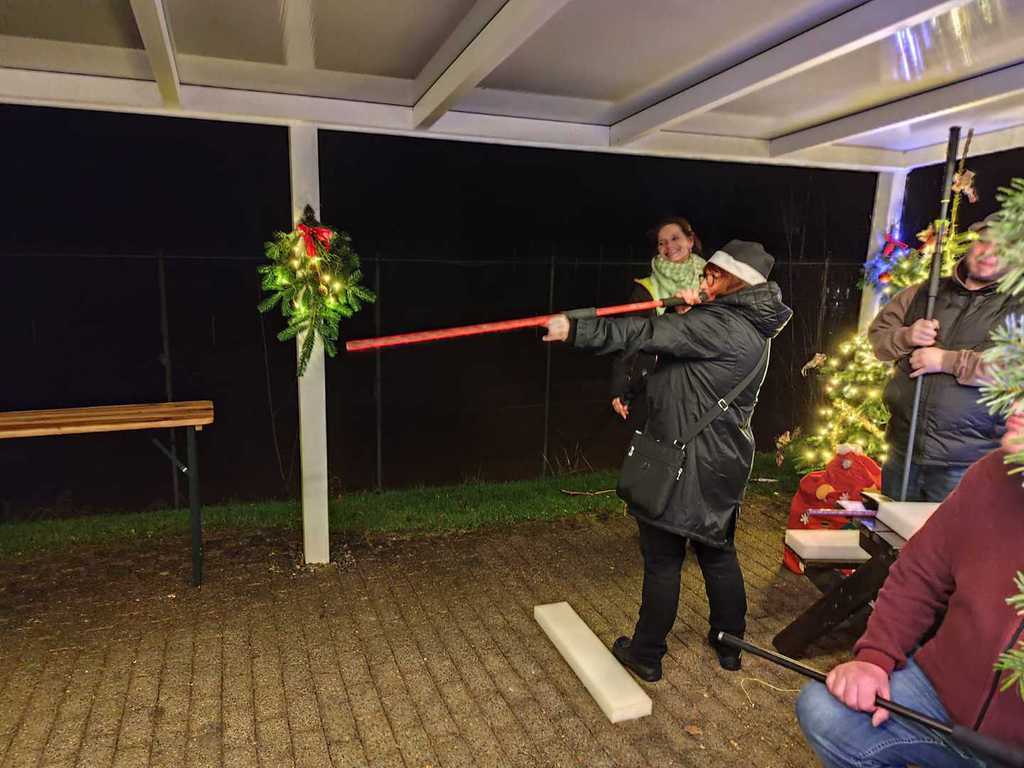 Am Nikolaus Tag 2025 fand unsere diesjährige Weihnachtsfeier statt. Bei Glühwein, Glühbier, Andreas seinem berühmten Grünkohl, Eintopf und schön verzierten Plätzchen von der Jugend, hatten wir einen riesig gelungenen Abend. Es gab auch wieder kleine Weihnachtsgeschenke, welche bei einem kleinen Dart Spiel, gewonnen werden könnten. Später wurden auch noch die Blasrohre und Zwillen gezückt. Da soll mal einer sagen Bogenschützen wären nicht vielseitig. Hier ein paar Eindrücke...