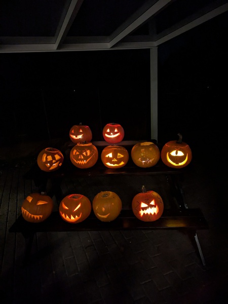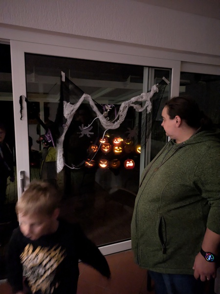 Es wurde eine große Familien Pizza bestellt zum stärken. Das war auch nötig, die Stärkung brauchten die Kiddies zum Kürbis schnitzen.